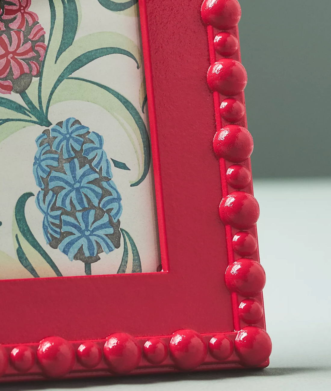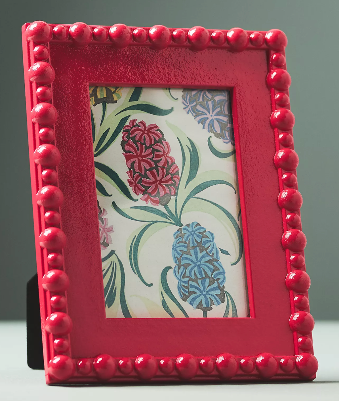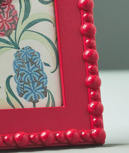 The Amelia Frame brings a burst of personality to your space with its striking red hue and playful bead detailing along the border. Crafted from quality wood, this frame is perfect for showcasing cherished memories, adding a pop of color to any room with its modern-meets-eclectic design. Whether placed on a shelf or tabletop, the Amelia Frame is a statement piece that elevates your decor.